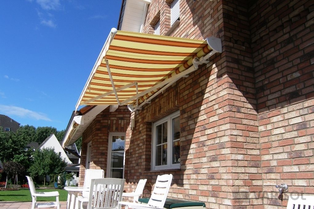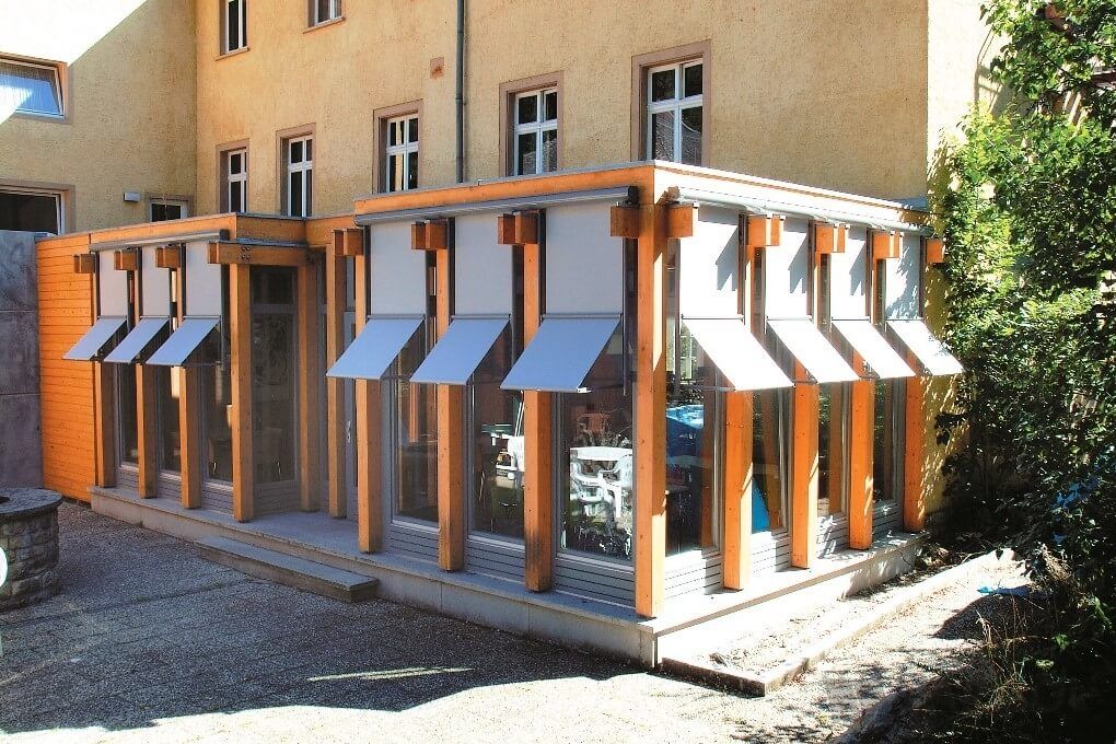 Mit ihrem klaren, puristischen Design harmoniert die Kastenmarkise VARISOL K450 perfekt mit modernen Architektenbauten im Bauhaus-Stil. Überzeugen kann die Kastenmarkise auch mit modernster Technik, Vielseitigkeit und Vorteilen bei der Montage. So lässt sich die K450 dank ihrer rechten Winkel und geraden Linien – in Kombination mit der geraden